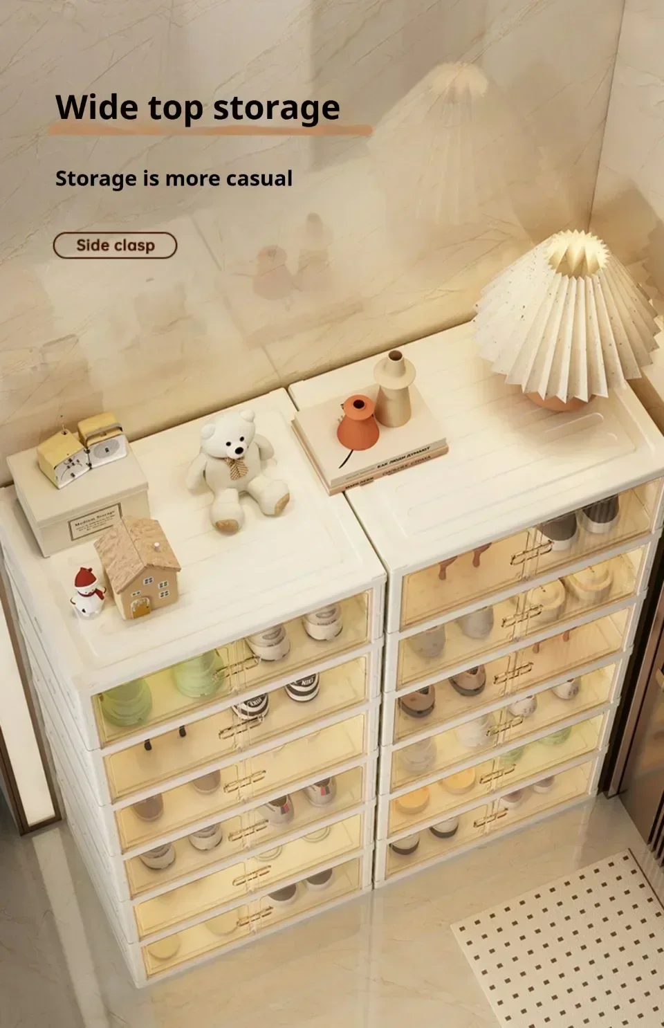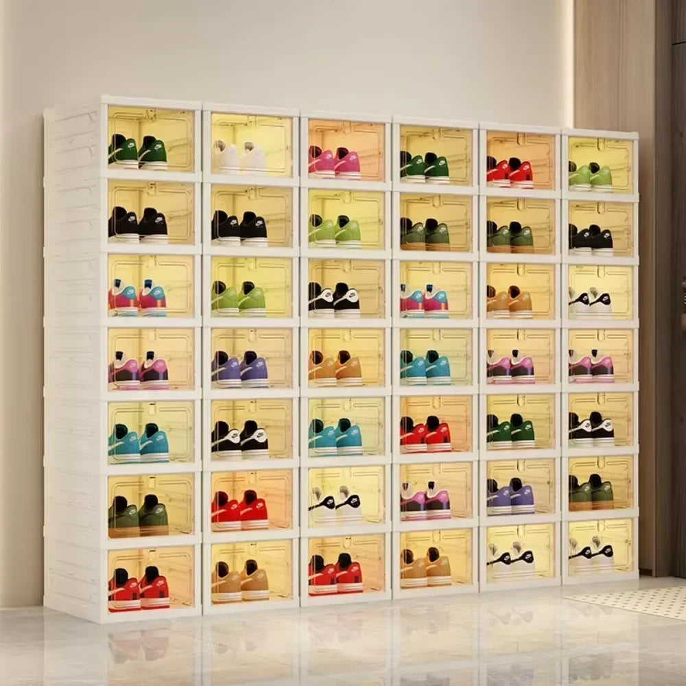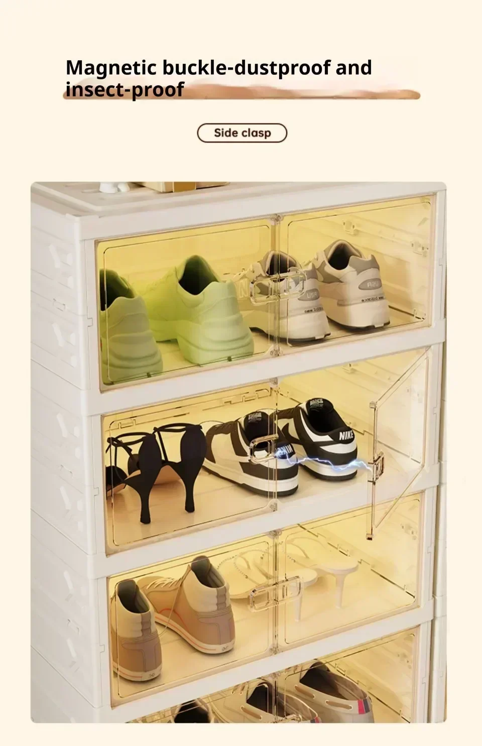 6 Layers Foldable Shoes Box Dustproof Thickened Plastic Sneaker Shoe Cabinet Modern Stackable Cabinet Transparent Shoe Rack