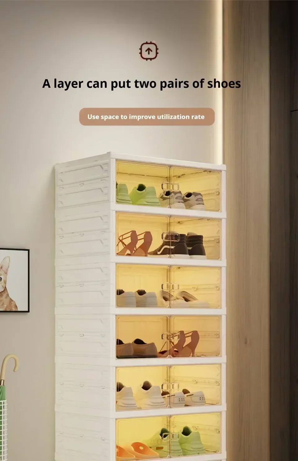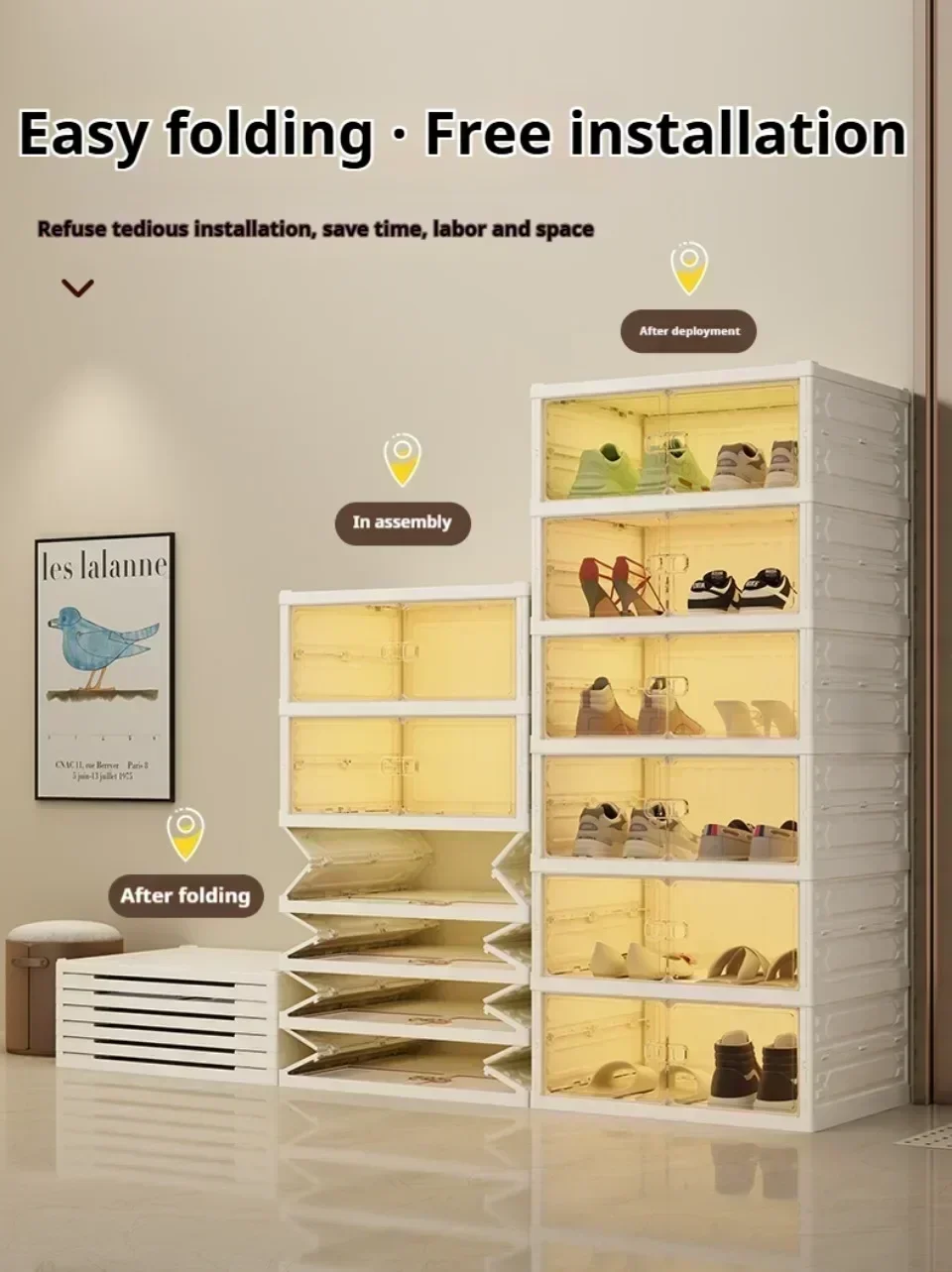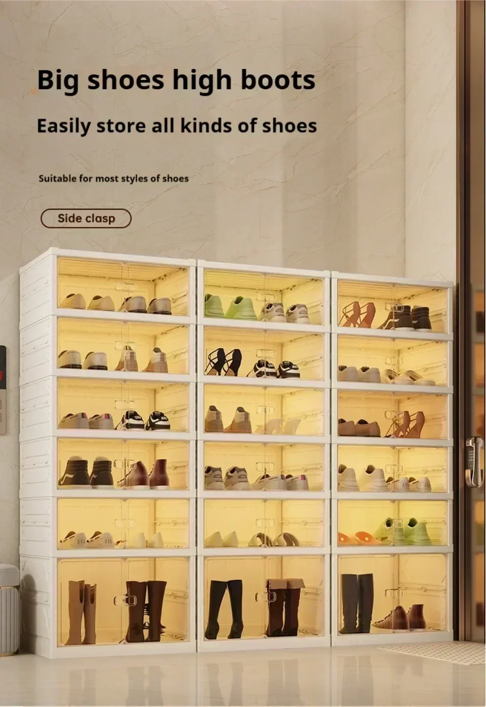 6 Layers Foldable Shoes Box Dustproof Thickened Plastic Sneaker Shoe Cabinet Modern Stackable Cabinet Transparent Shoe Rack