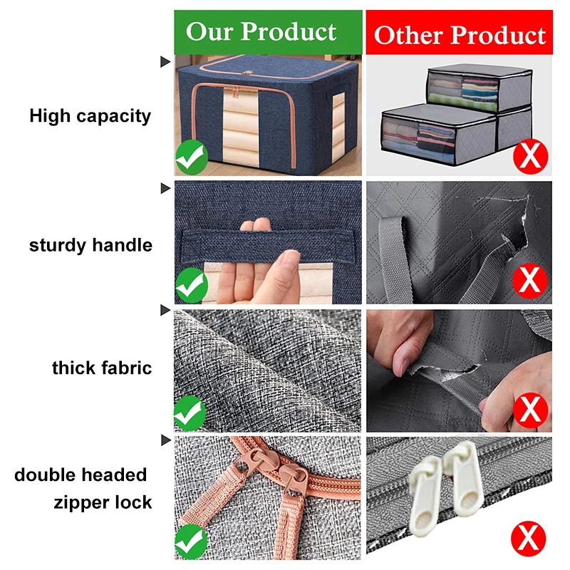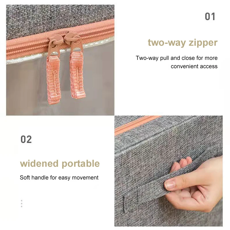 Las resistentes asas de transporte en ambos lados facilitan el transporte de su equipaje cuando se mueve o se mueve. No solo se puede utilizar para almacenar ropa, sino que también se puede utilizar como caja de almacenamiento para edredones de invierno, ropa de cama, juguetes y artículos para el hogar