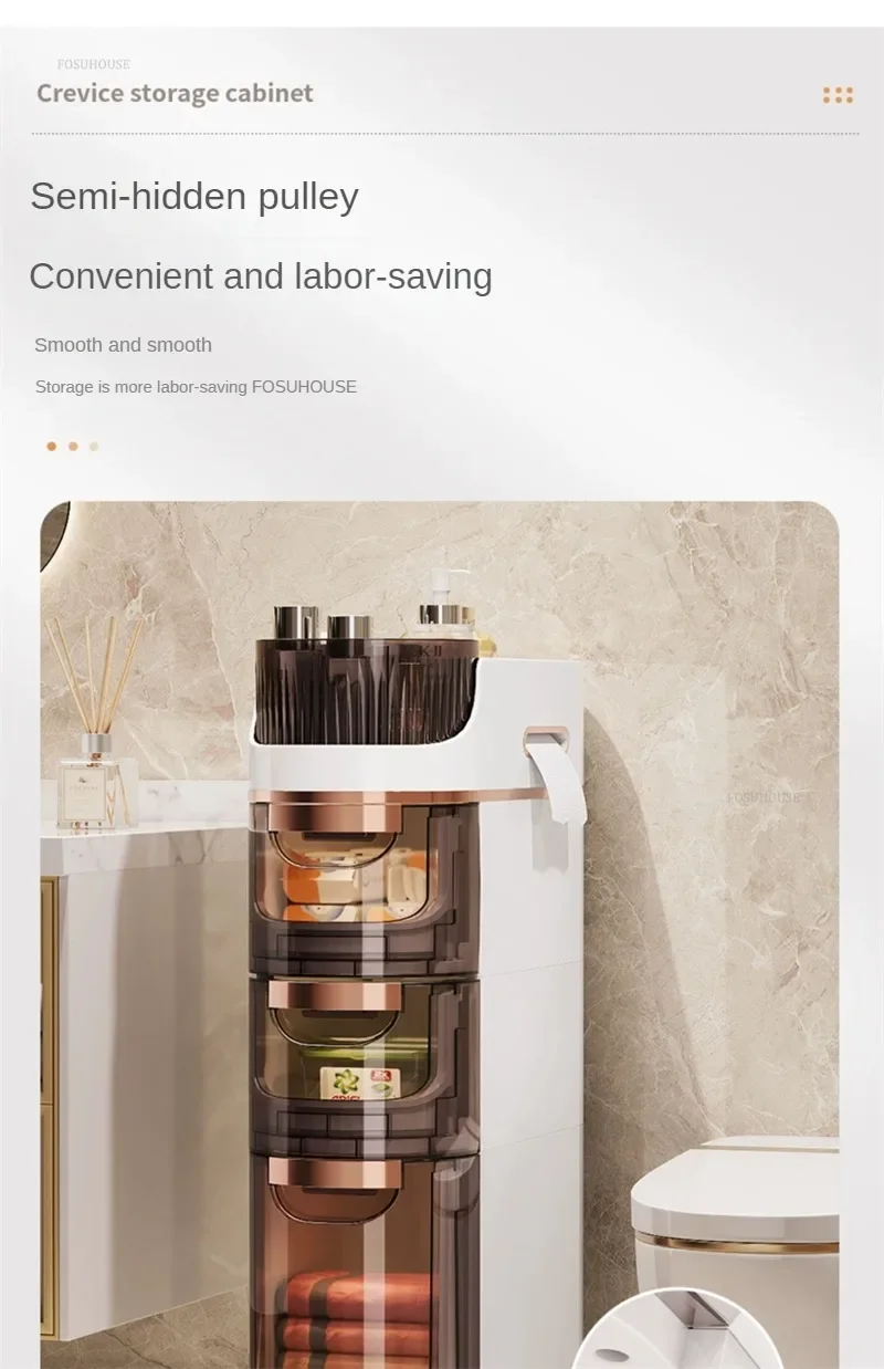 Household Bathroom Cabinets Waterproof Organizer Rack Free Installation Floor Mobilable Toilet Side Narrow Cabinets Furniture