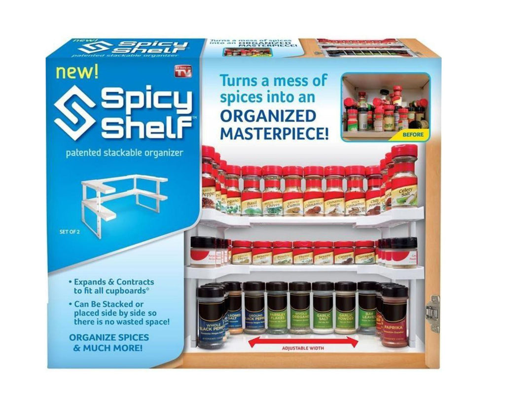 We often find that our cupboard shelves are too large to stack items on top of one another, or that all our spices, medicines, cosmetics etc. are making our cupboards look messy and untidy. Make cluttered, disorganised and messy cupboards a thing of the past with the Spicy Shelf. Spicy Shelf is a multi-functional space organizer. Can easily be stacked on top of each other, or side by side.