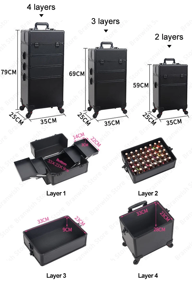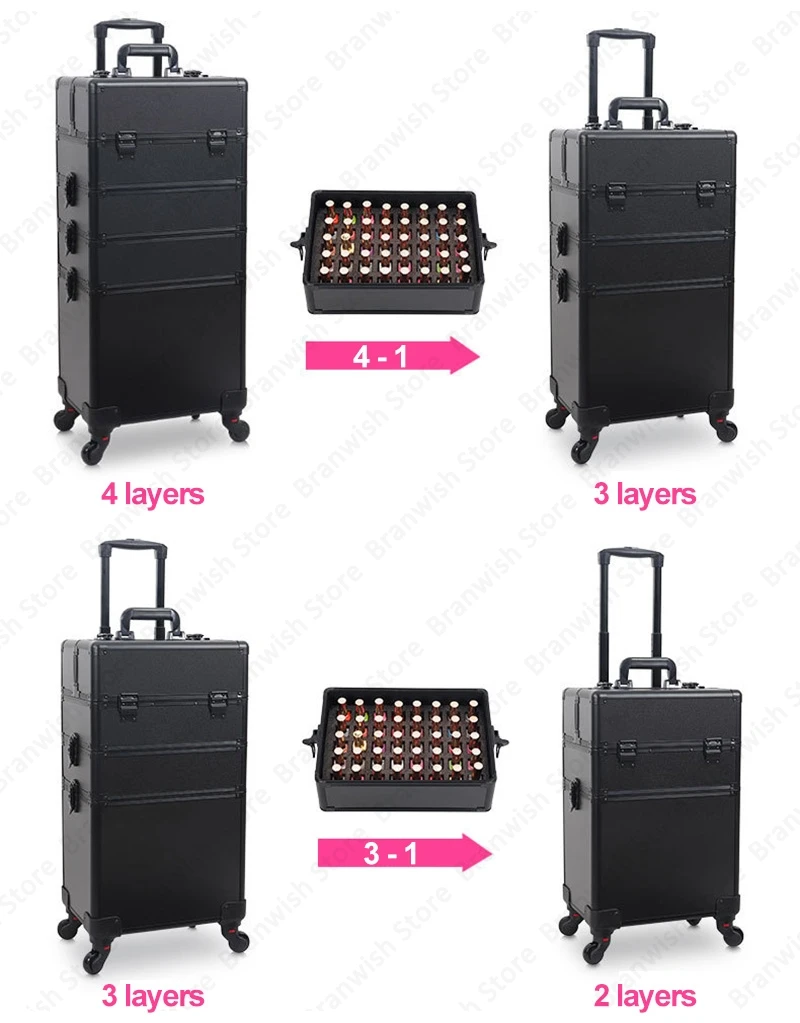 Professional Detachable Cosmetic Case Beauty Nail Makeup Train Case Rolling Makeup Travel Case Tool Box Makeup Storage Organizer