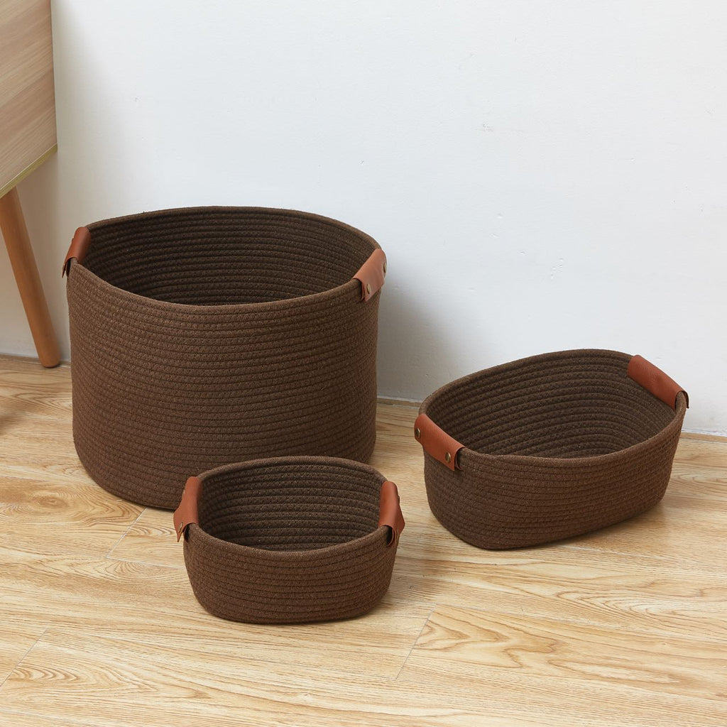 Multi-purpose Storage Bins Set of 3 storage round organizer baskets can be used storing clothes, books, kid toys, blankets, makeups anything in the ideal size. Easy to keep your room neat and organized.